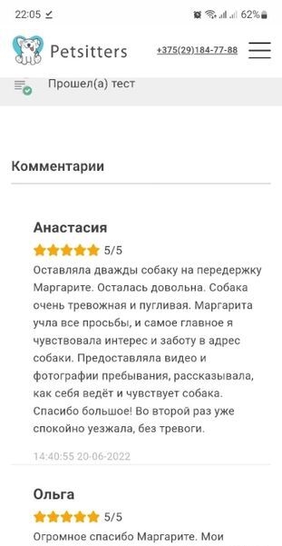 Работаю на дому, поэтому большую часть своего времени провожу дома. Квартира двухкомнатная. Всегда буду с вами на связи, рассказывать как проходит адаптация у вашего питомца, присылать фото- видео отчёты.