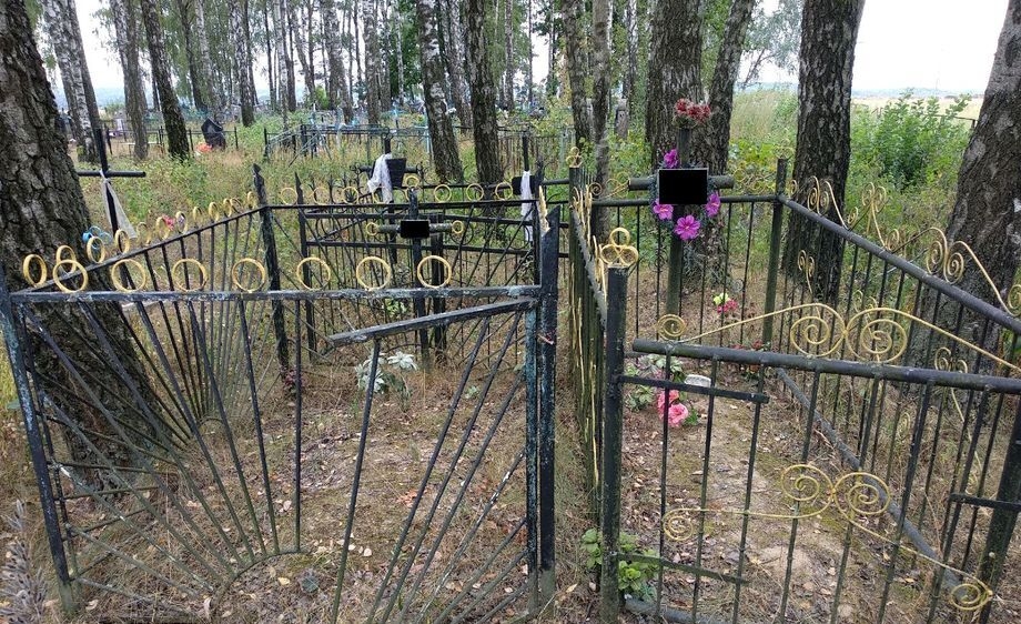 Очистка от сорной травы на месте захоронения и рядом с ним.