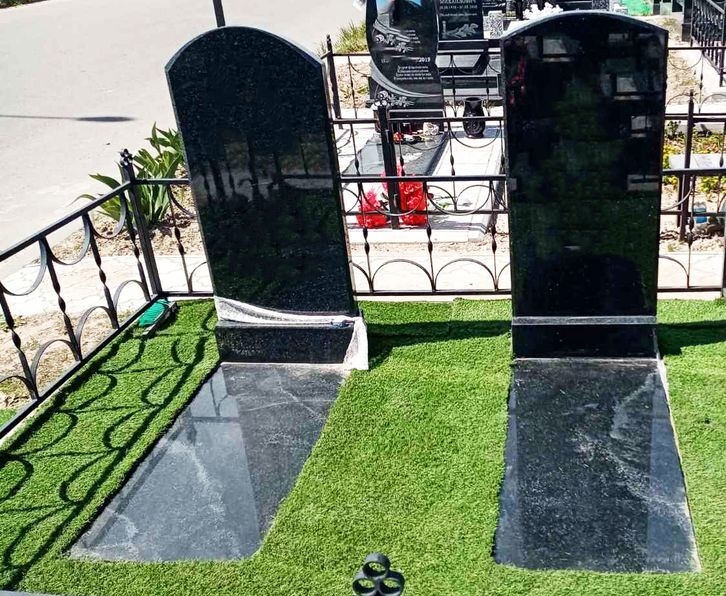 Также возможна укладка искусственного газона в цветники памятников из гранита либо гранитно-мраморной крошки, что придает захоронению законченный более эстетичный вид.